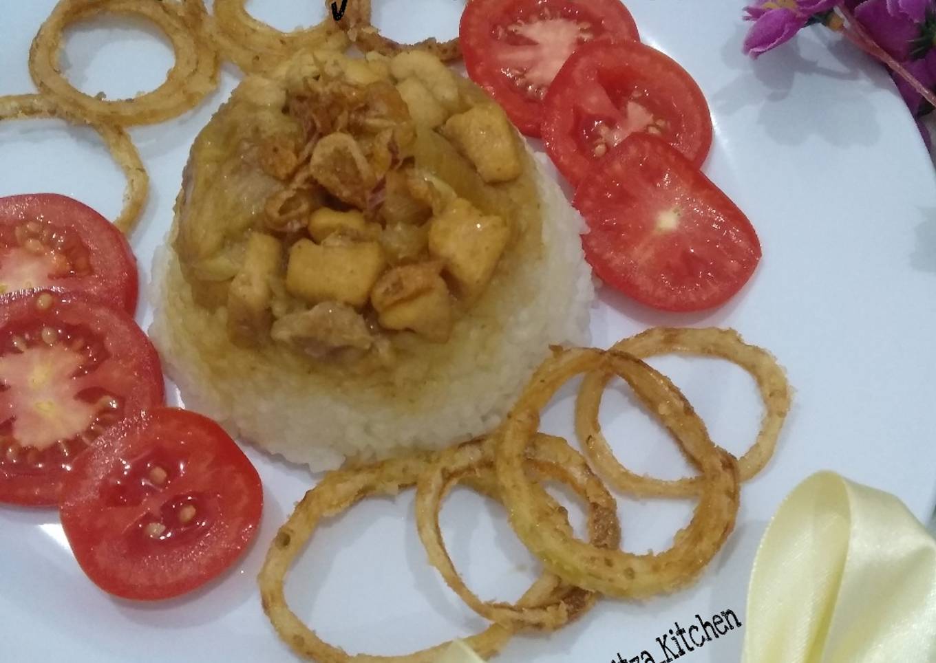 - Buat kuah nasi tim dengan cara rebus tulang ayam dan kaldu jamur serta irisan daun bawang sampai mendidih, dan sajikan nasi tim hangat-hangat beserta kuah dengan beri pelengkap taburan bawang goreng dan onion ring yang menambah nikmatnya nasi tim.... hmm...enak banget ini 😋😋😋