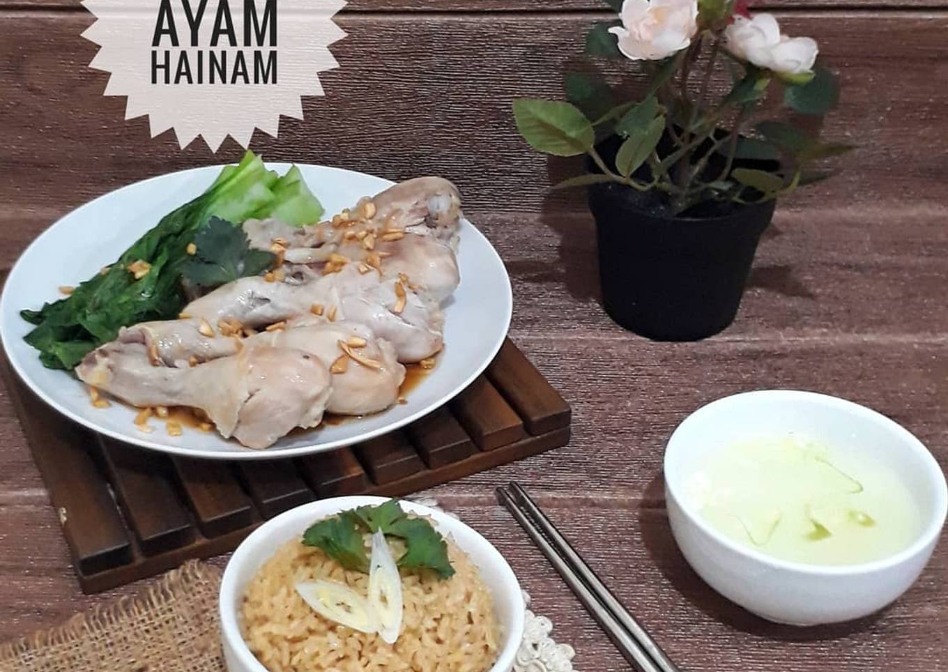 Perpaduan yang pas antara nasi hainam dengan ayam rebus. Mudah memasaknya..