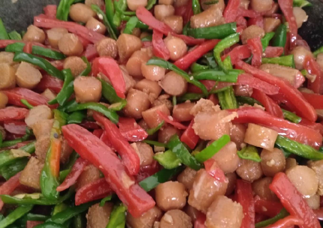 - Pertama kupas basis sapi dan basis ayam lalu iris memanjang untuk basis sapi dan untuk basis ayam potong bulat berisi,kemudian goreng 3/4 matang saja,angkat & tiriskan dahulu,kemudian kupas cabe hijau besar dan buang bijinya lalu iris memanjang